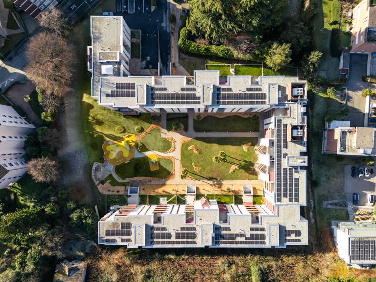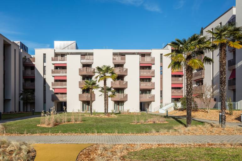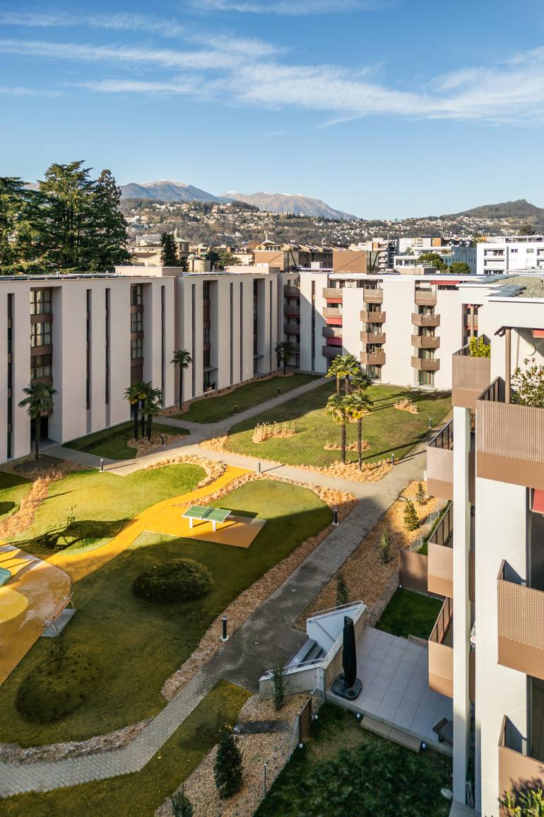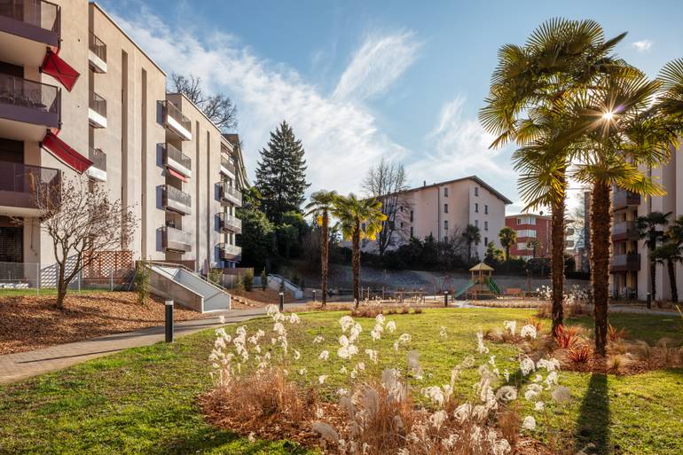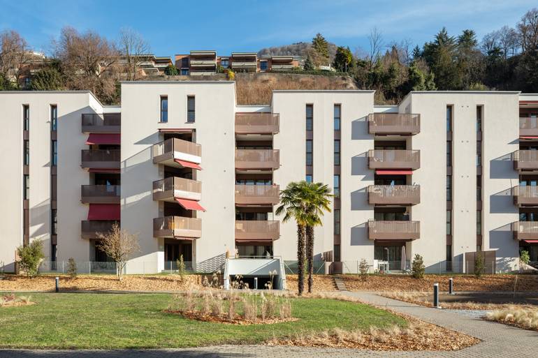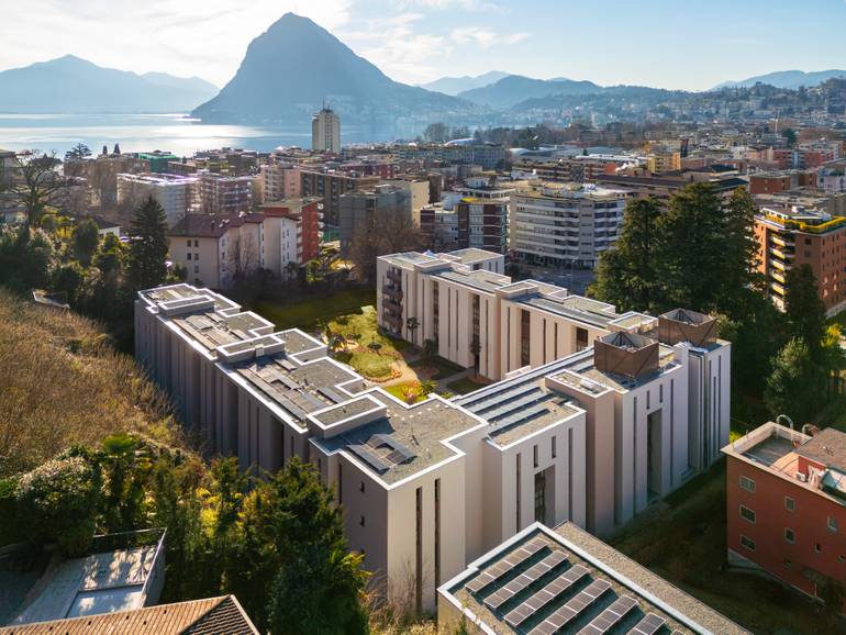Risanamento energetico dell'involucro, rinnovo parti comuni e terrazze, risanamento sismico, sostituzione impianto di riscaldamento con termopompe, nuovo impianto fotovoltaico. Viganello